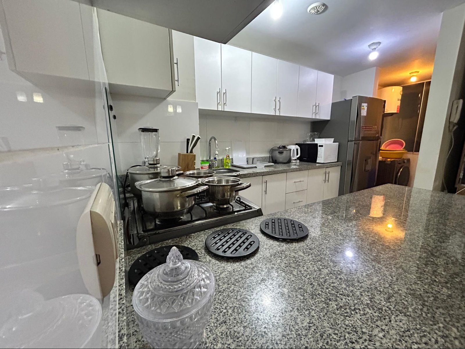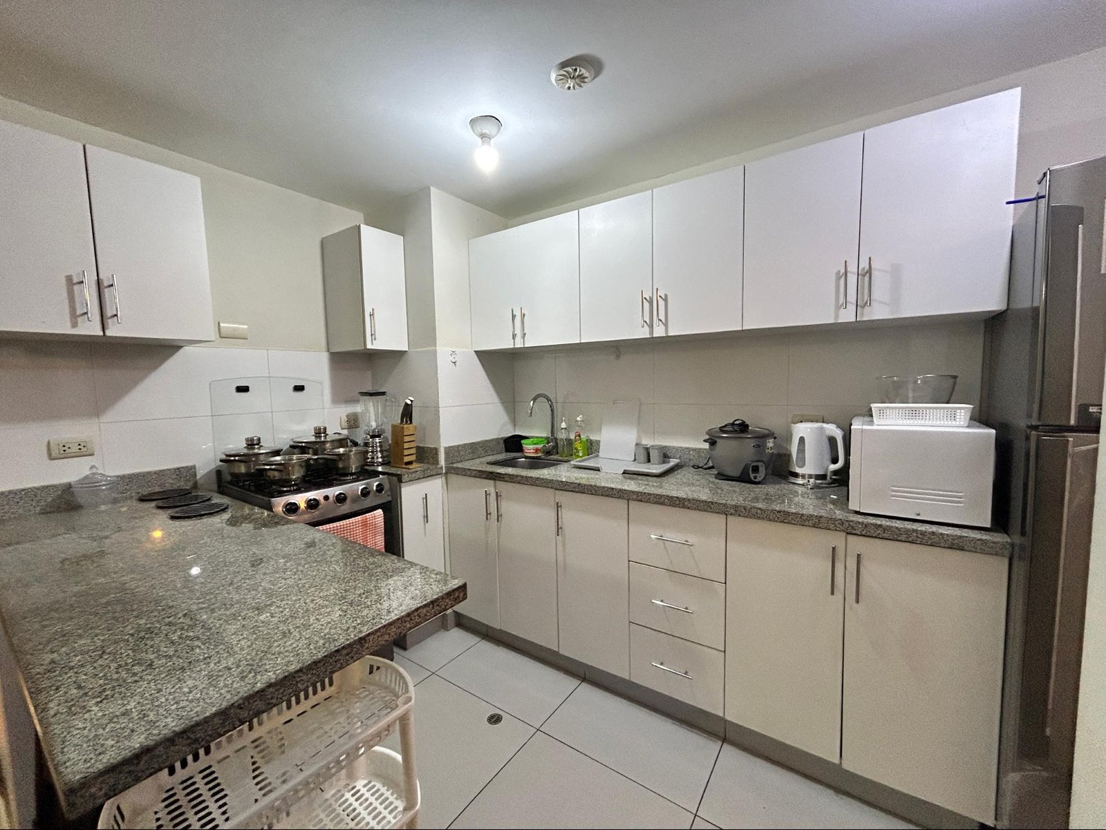 - Cocina equipada (microondas, nevera, cocina, licuadora, arrocera y utensilios)