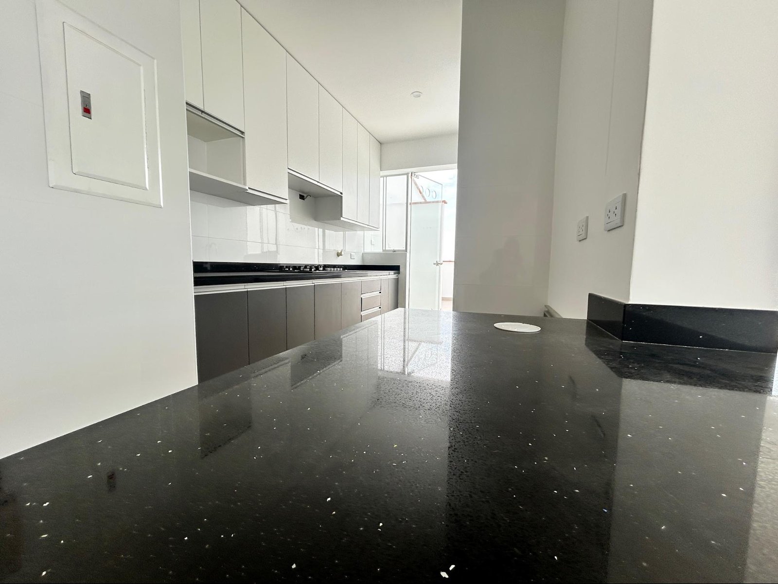 - Cocina con tablero de granito + muebles altos y bajos + encimera
