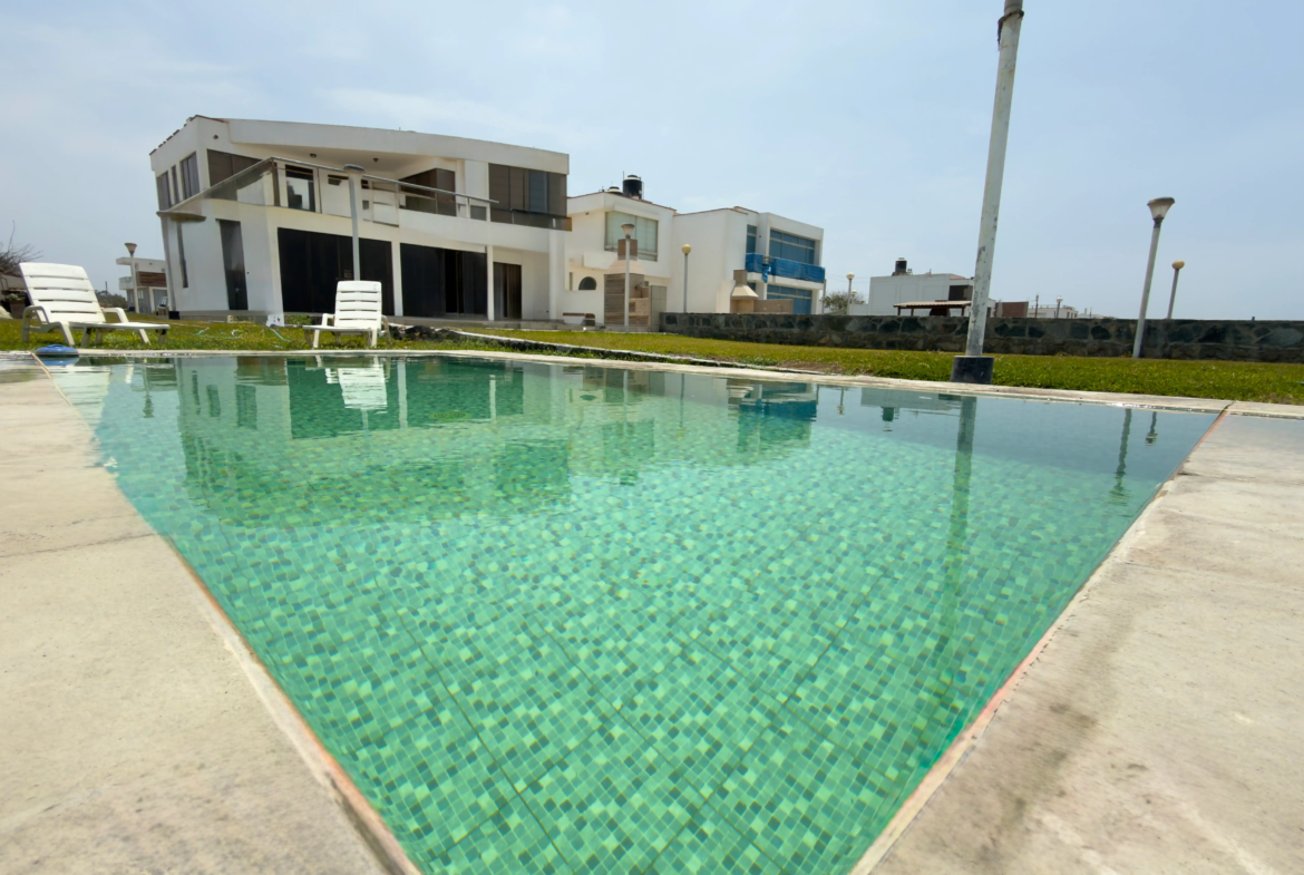 - 180 m2 (área piscina, parrilla y estacionamiento para 3 vehículos) en la primera fila hacia la playa
